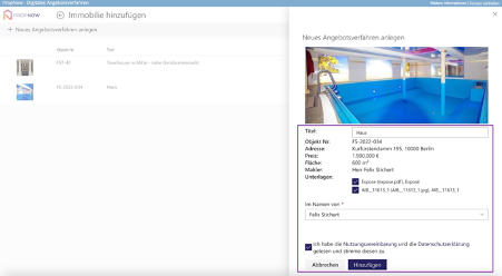 Im Folgenden zeigen wir Ihnen in wenigen Schritten, wie Sie ein digitales Angebotsverfahren mit PropNow erstellen: