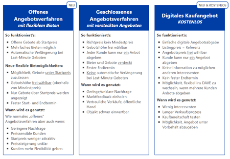 - Flexible Bietmöglichkeiten im „offenen“ Angebotsverfahren