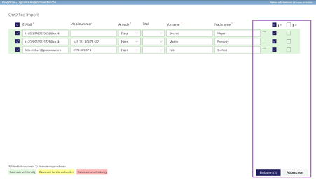 - CRM Import = Interessenten, die mit der Immobilie verknüpft sind und sich in dem Reiter "manuelle Zuordung befinden" werden in einer Liste angezeigt und können mit einem Klick per E-Mail und SMS eingeladen werden.