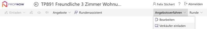 Ihren Verkäufer können Sie im Menü "Angebotsverfahren" unter der Option "Verkäufer einladen" einen Link zusenden, mit welchem dieser an der Marktpreisfindung teilhaben kann: