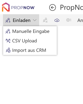 Generell gibt es drei Möglichkeiten um Interessenten einzuladen: Import aus Ihrem CRM-System, CSV-Upload oder Manuelle Eingabe: