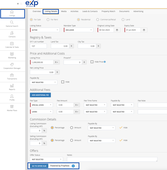 --> Press GO TO OFFER HUB and the setup for the process of this property will be started.