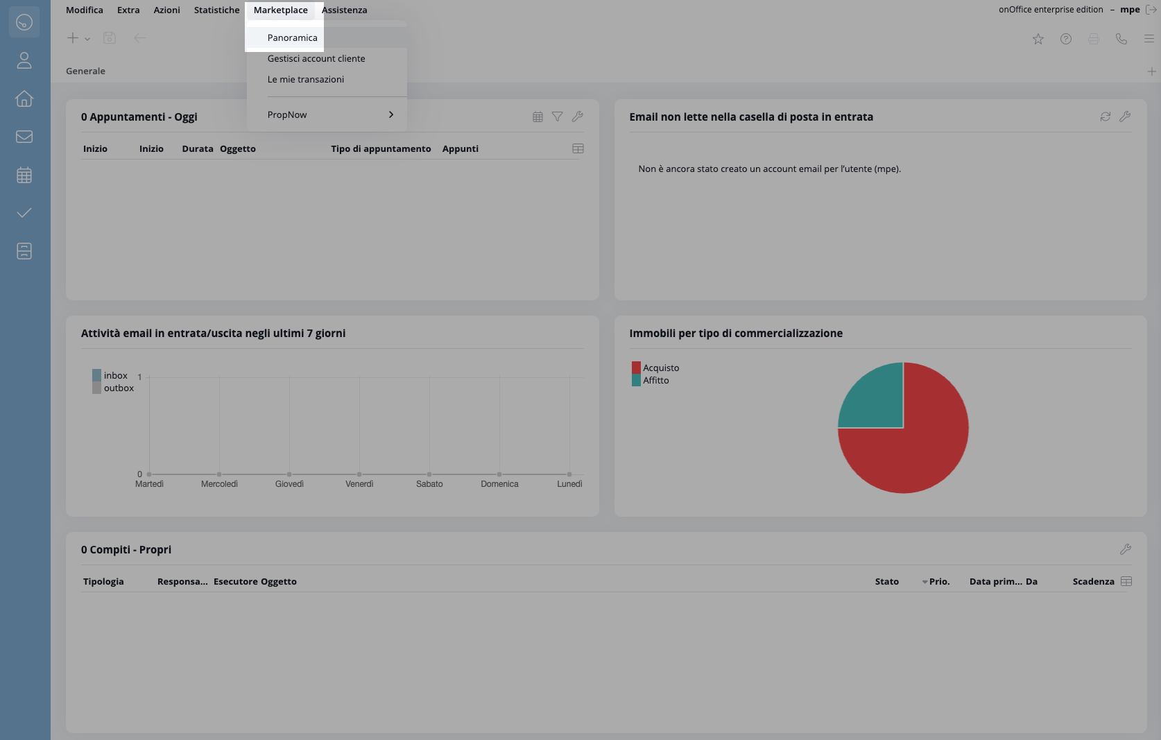 - Effettuate il login in onOffice e cliccate su "Panoramica" alla voce di menu "Mercato".